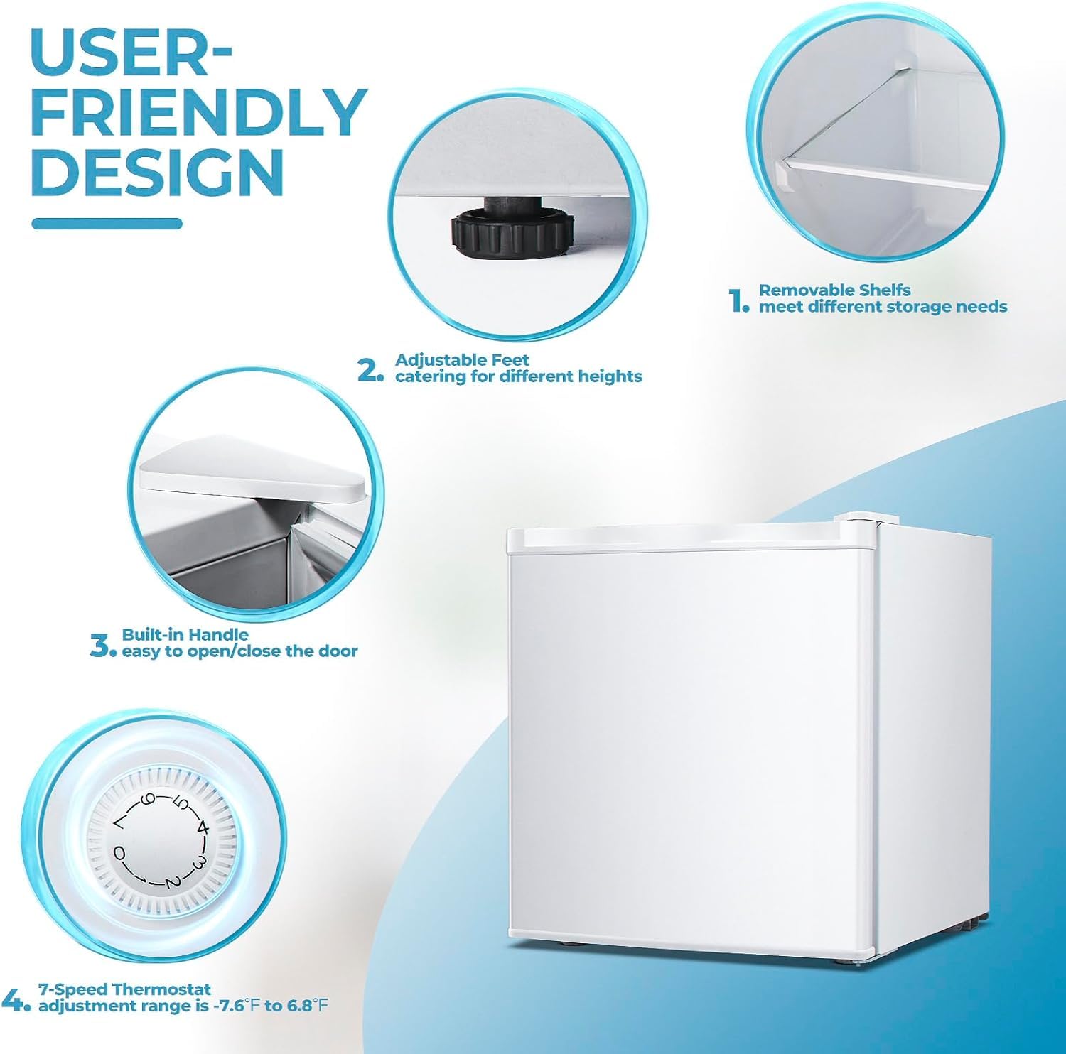 - 🧊SEVEN LEVELS of THERMOSTATIC CONTROL: The 7-level adjustable temperature control on the back of the Small Freezer Upright can select the desired temperature. "1" is the hottest and "7" is the coldest. Electactic Mini Freezer Countertop temperature can be controlled from -7.6°F to 6.8°F.