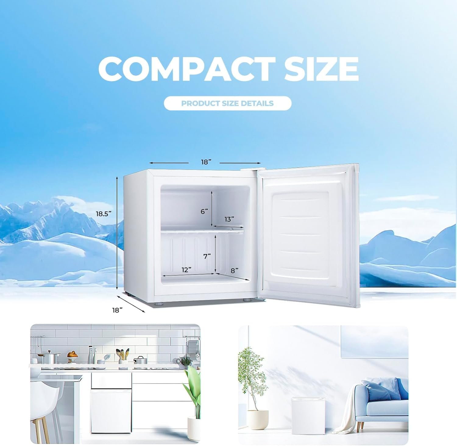 - 🧊POTABLE&COMPACT MINI FREEZER: Electactic Mini Freezer are suitable for Any Place!The Compact Upright Freezer with 17.5”(W)*18.5”(D)*19.6”(H) measurement and 1.1 cubic feet capacity is perfectly sized to taking up less space,suitable for university dormitory, RV, apartment, or office.