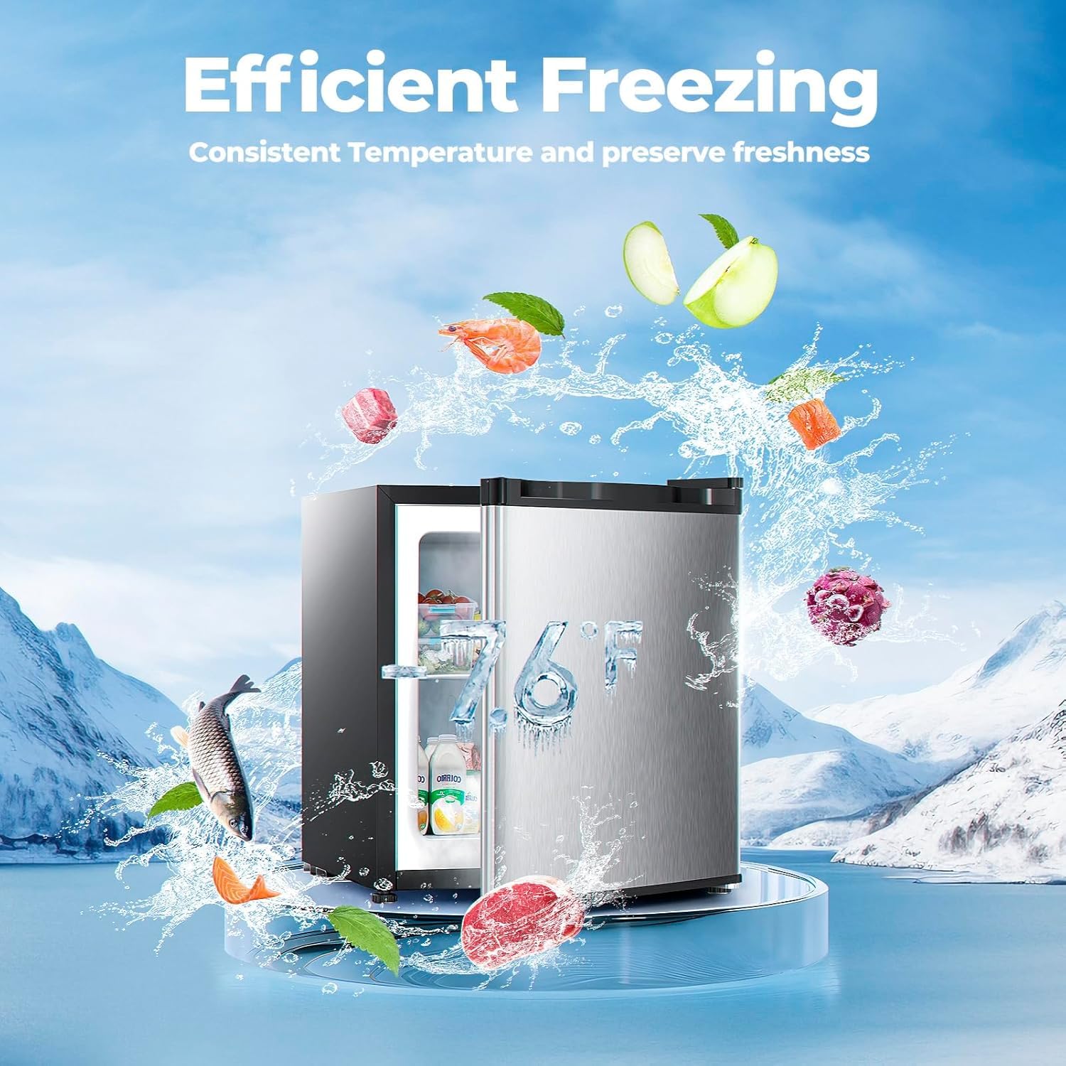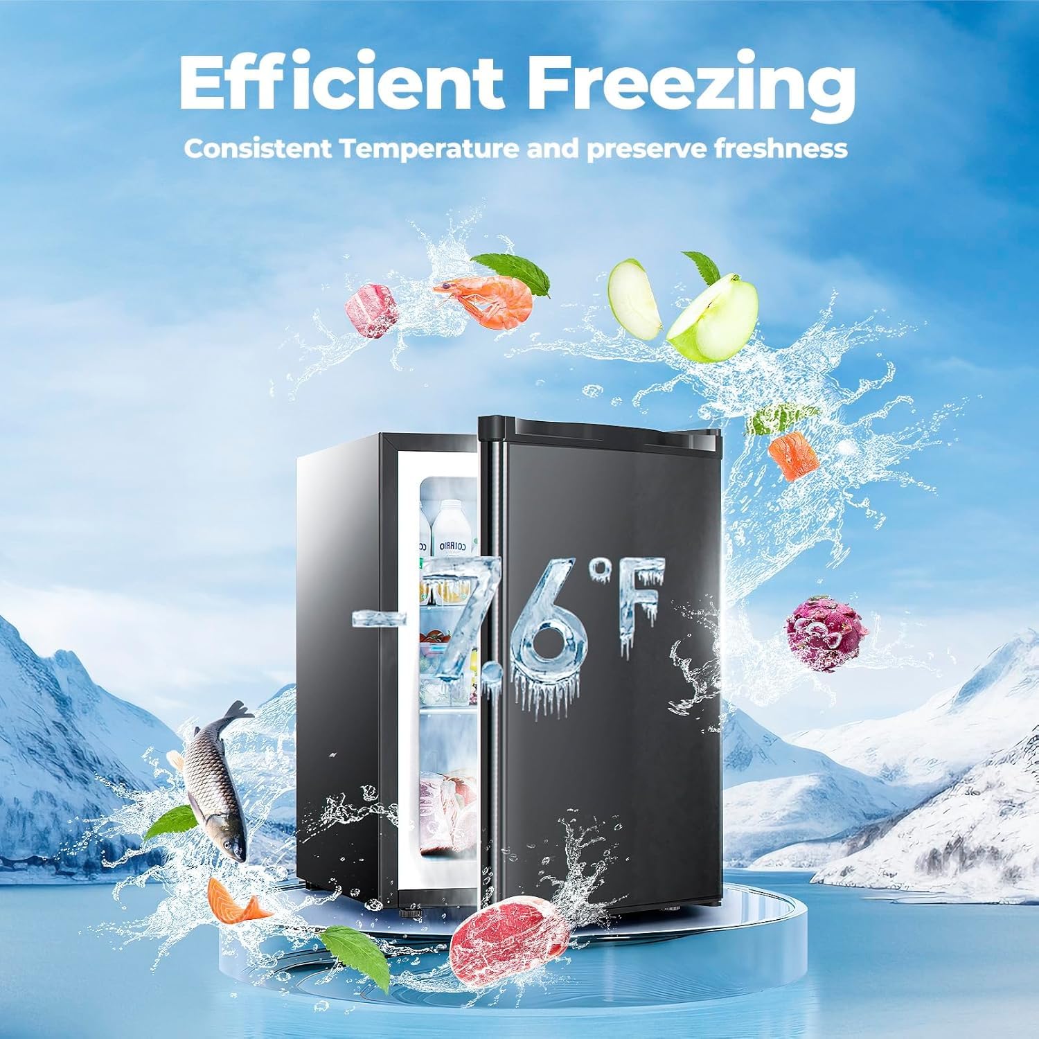 - 🧊ALL-ROUND FAST COOLING:1.1 Cu.ft high capacity upright freezer with powerful refrigeration. Faster and more thorough freezing, ten minutes of extremely fast freezing, to ensure the freshness of the ingredients. Compact Freezer is saving space design.Large Capacity is Great using for breast milk, meat, ice cream, aquatic products, cold drinks, quick-freezing and other purposes.Perfect for Home,Dorms,Kitchen and Office.