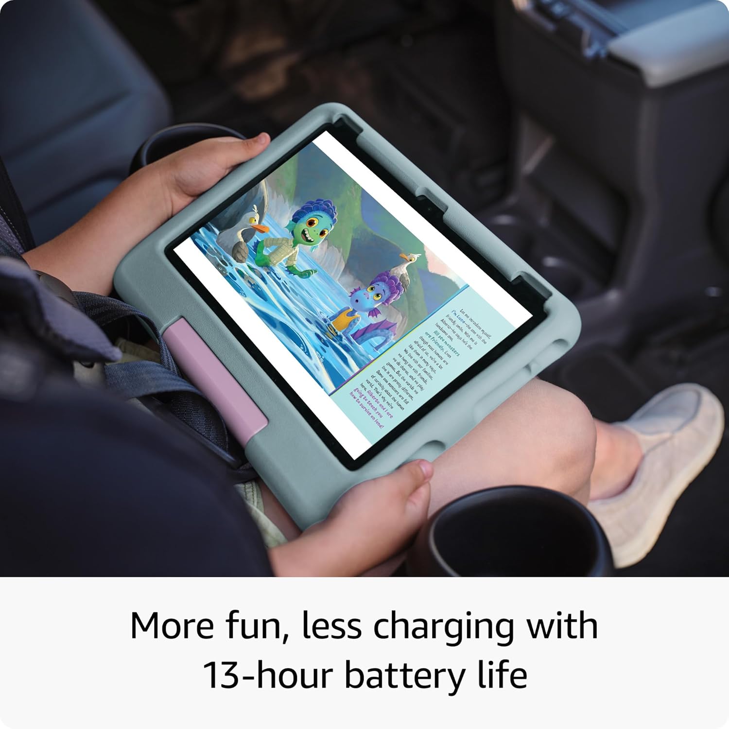 - KEEPS UP WITH KIDS — Use it anywhere—the 13-hour battery life can handle it. 32 GB of storage and up to 1 TB of expandable storage (sold separately) leave room for their books, movies, and more while on the go.