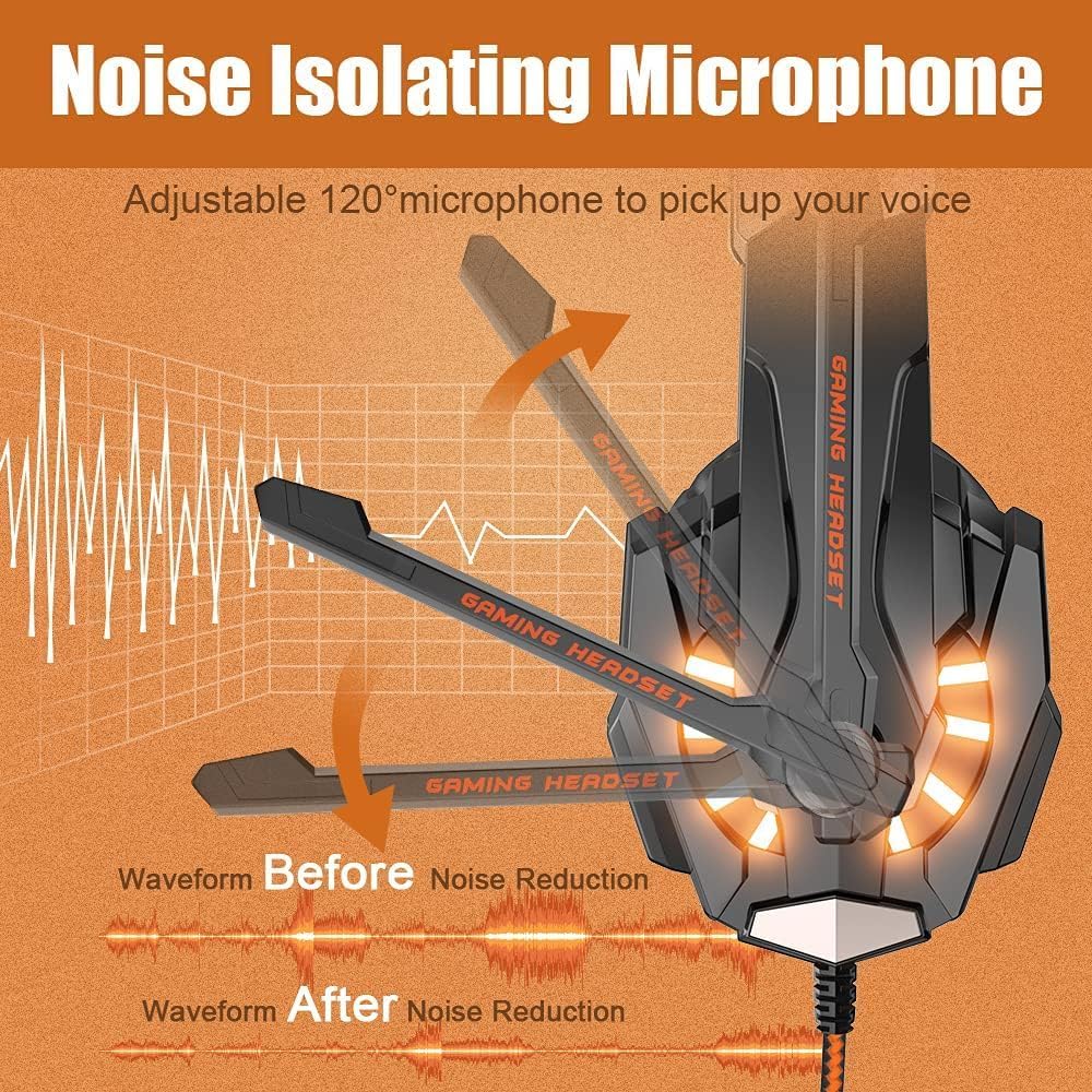 - 【Noise Isolating Microphone】Headset integrated onmi-directional microphone can transmits high quality communication with its premium noise-concellng feature, can pick up sounds with great sensitivity and remove the noise, which enables you clearly deliver or receive messages while you are in a game. Long flexible mic design very convenient to adjust angle of the microphone.