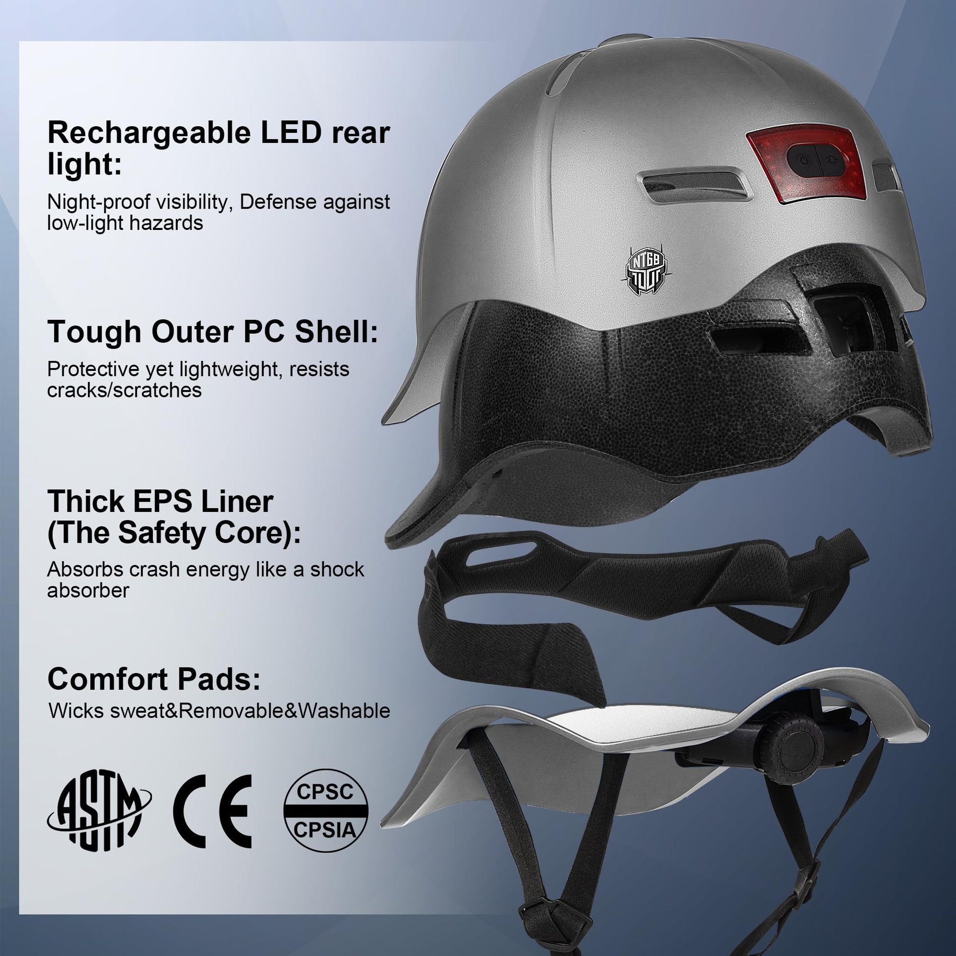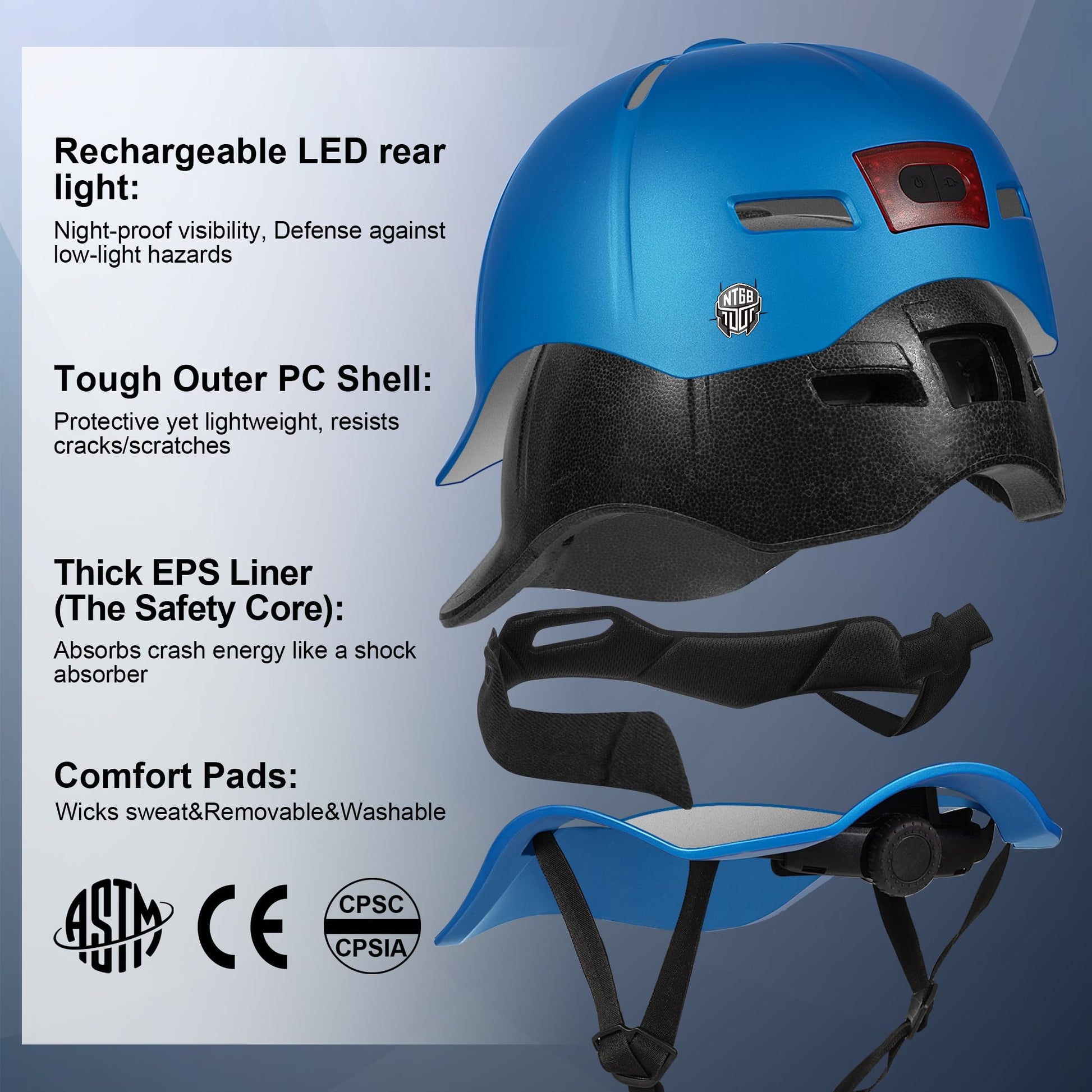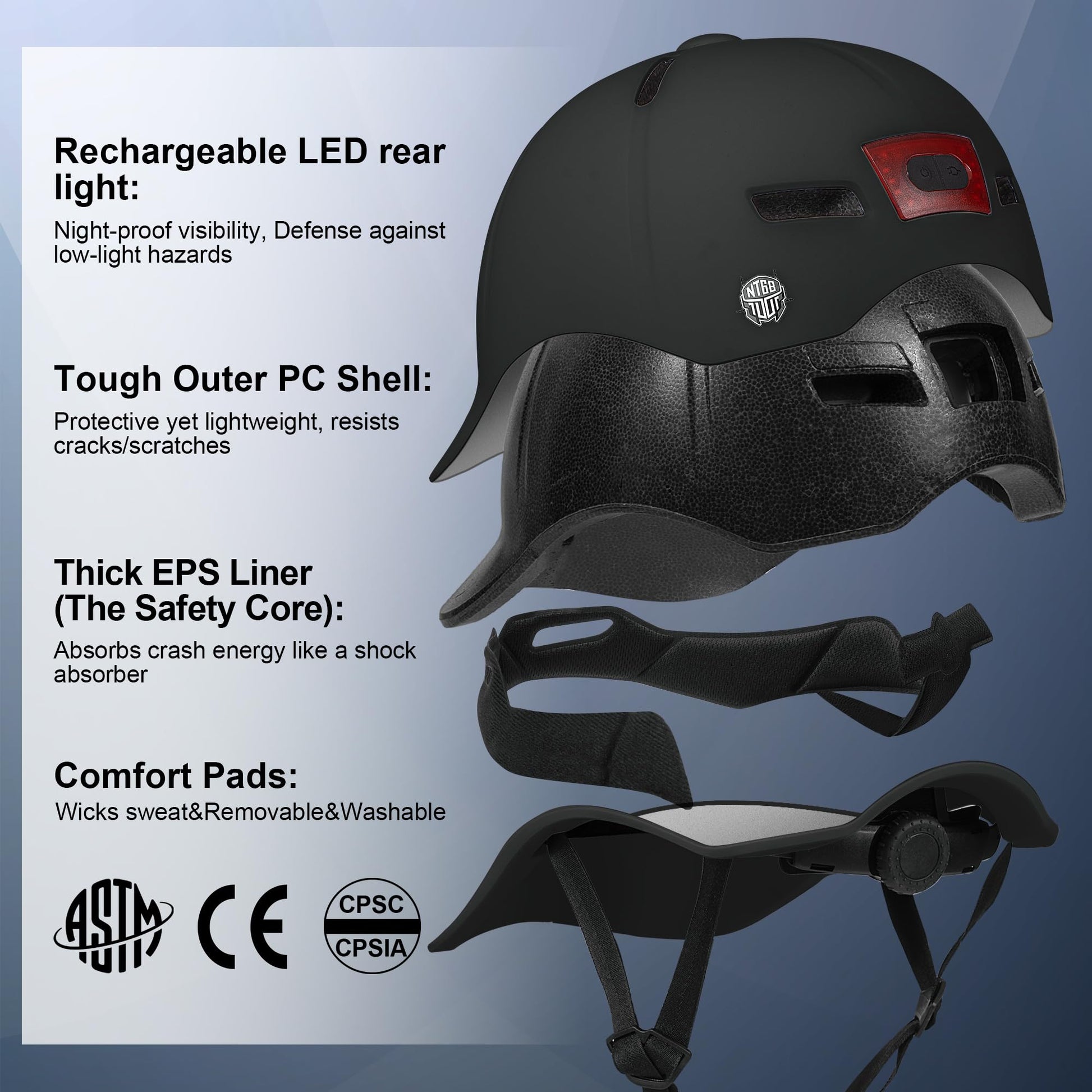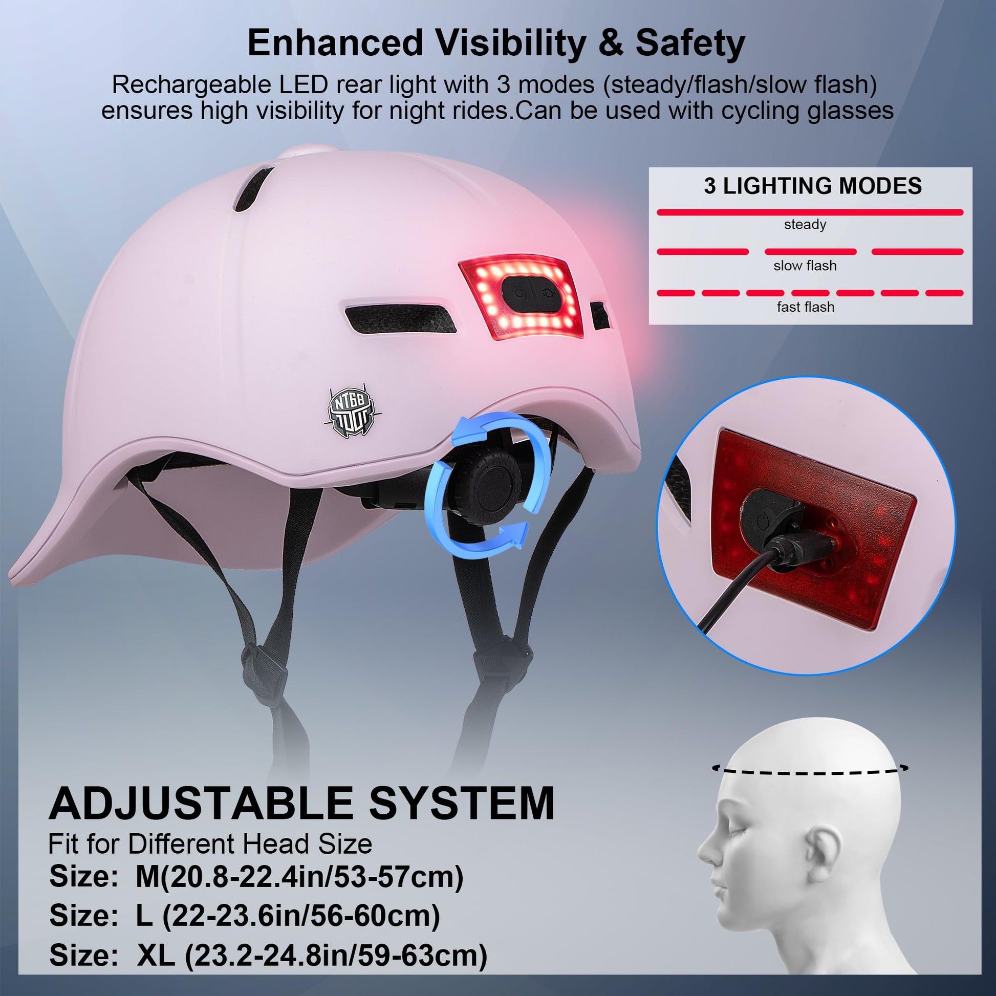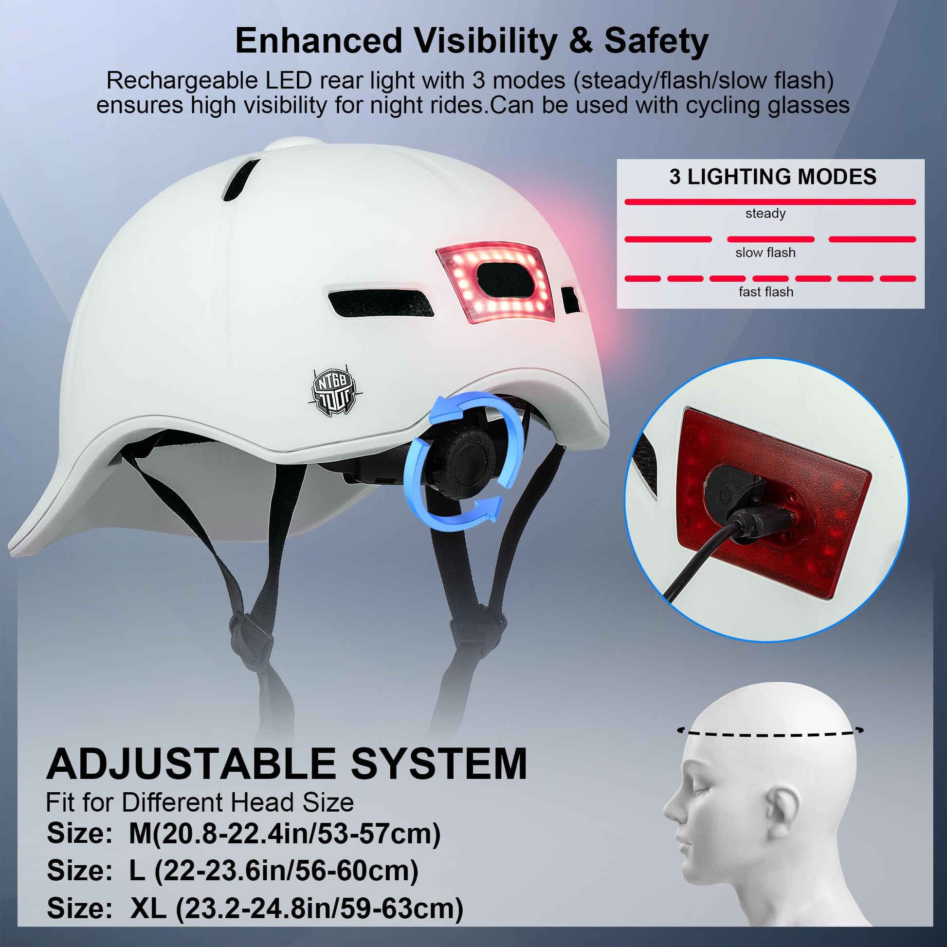 NTGBV Adult Bike Helmet with Rechargeable LED Light: Night-Rider Confidence Meets All-Day Comfort