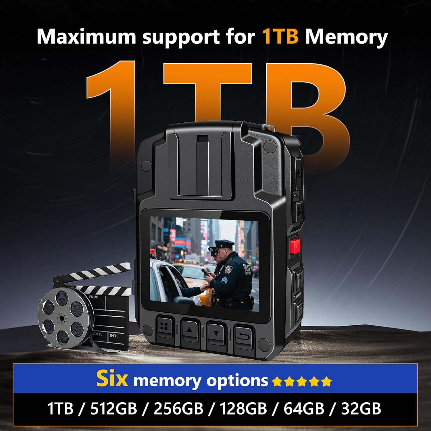 - 【128GB Body Camera & Loop Recording】 Built-in 128GB SD card to store all your videos, audios and pictures. When the SD card reaches the storage limit, the latest video will automatically overwrite the oldest video, ensuring that more important scenes can be recorded at any time. Select local playback to browse saved files or TRANSFER to your computer using USB