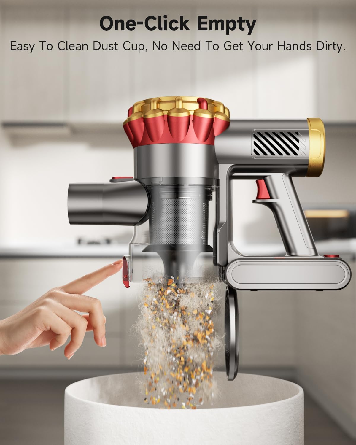 - [𝟓𝟓𝐊𝐏𝐚 𝐒𝐮𝐜𝐭𝐢𝐨𝐧 & 𝟔𝟎𝟎𝐖 𝐌𝐨𝐭𝐨𝐫]: Ditch the dust bunnies and stubborn pet hair! With a 600W upgraded motor and 55KPa suction, Fame YCordless Vacuum Cleaner tackles every mess—hardwood floors, couch cushions, dog hair on carpets, crumbs in corners. Deep clean your entire house in just 5 minutes, keeping pets happy and your home spotless.