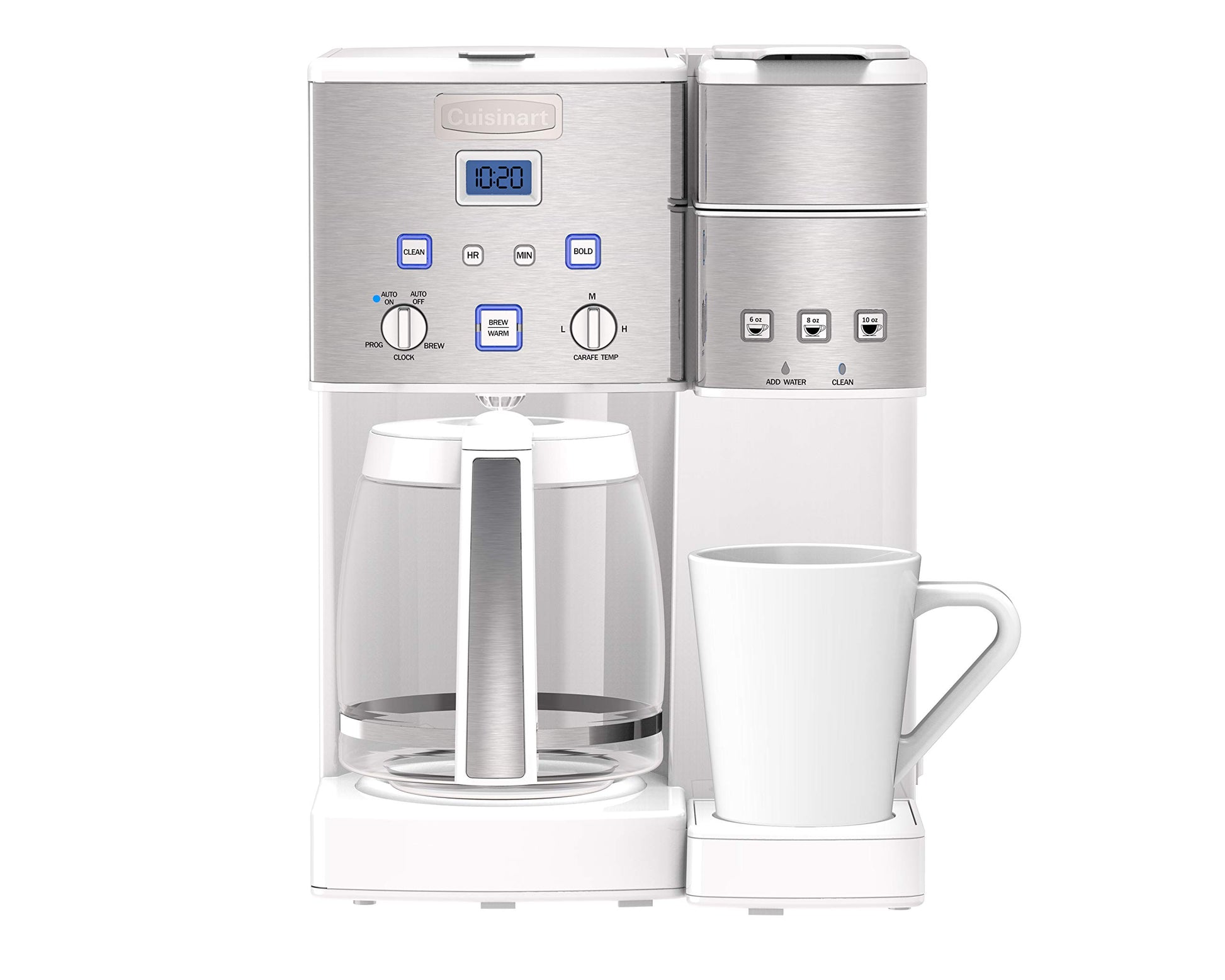 The Cuisinart Coffee center features a fully automatic 12-Cup coffeemaker on One side and a single-serve brewer on the other. Sipping solo or serving a crowd, it's easy to enjoy the gourmet taste you expect from a Cuisinart coffeemaker. And One coffeemaker that does the job of two frees up more space on your counter!.