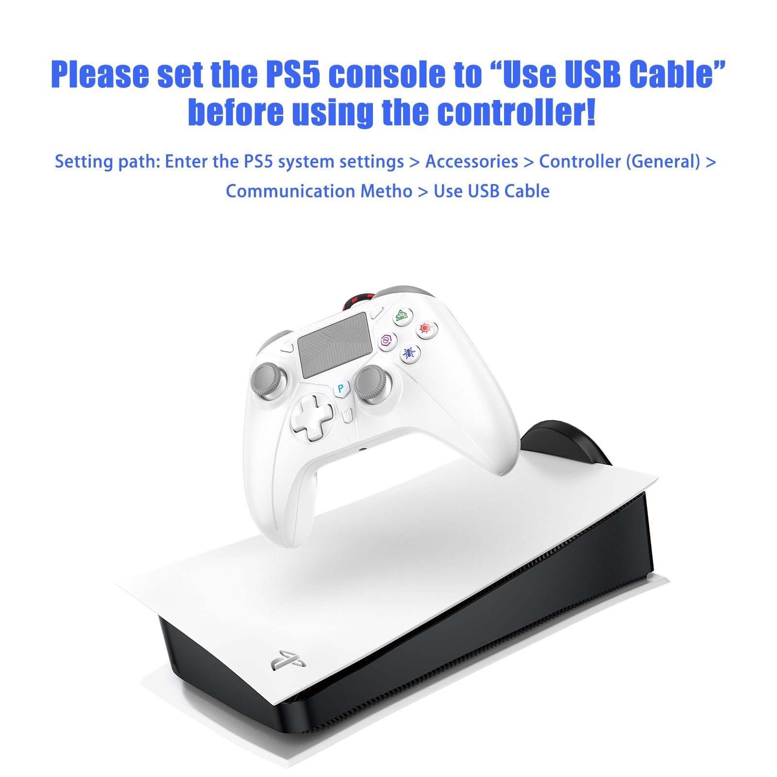 - 【Quick Connect & One Touch Wakeup】The controller can be connected wirelessly or wired to PS5 and PC (but is not compatible with PS4). Press the home button to quickly wake up the PS5 console. The first time the controller connects to the PS5 it needs a wired connection, after a successful connection it can be connected wirelessly.