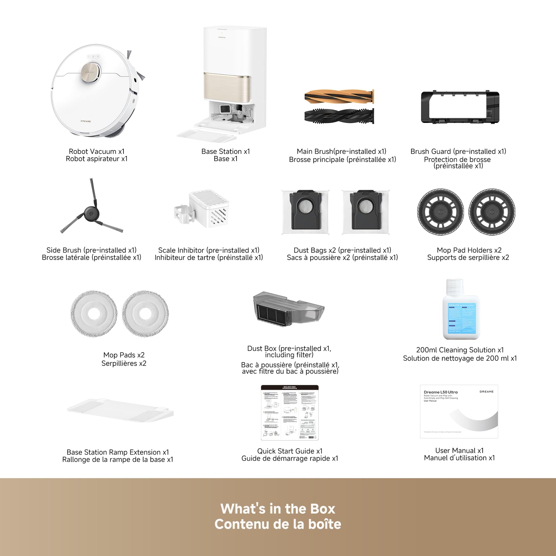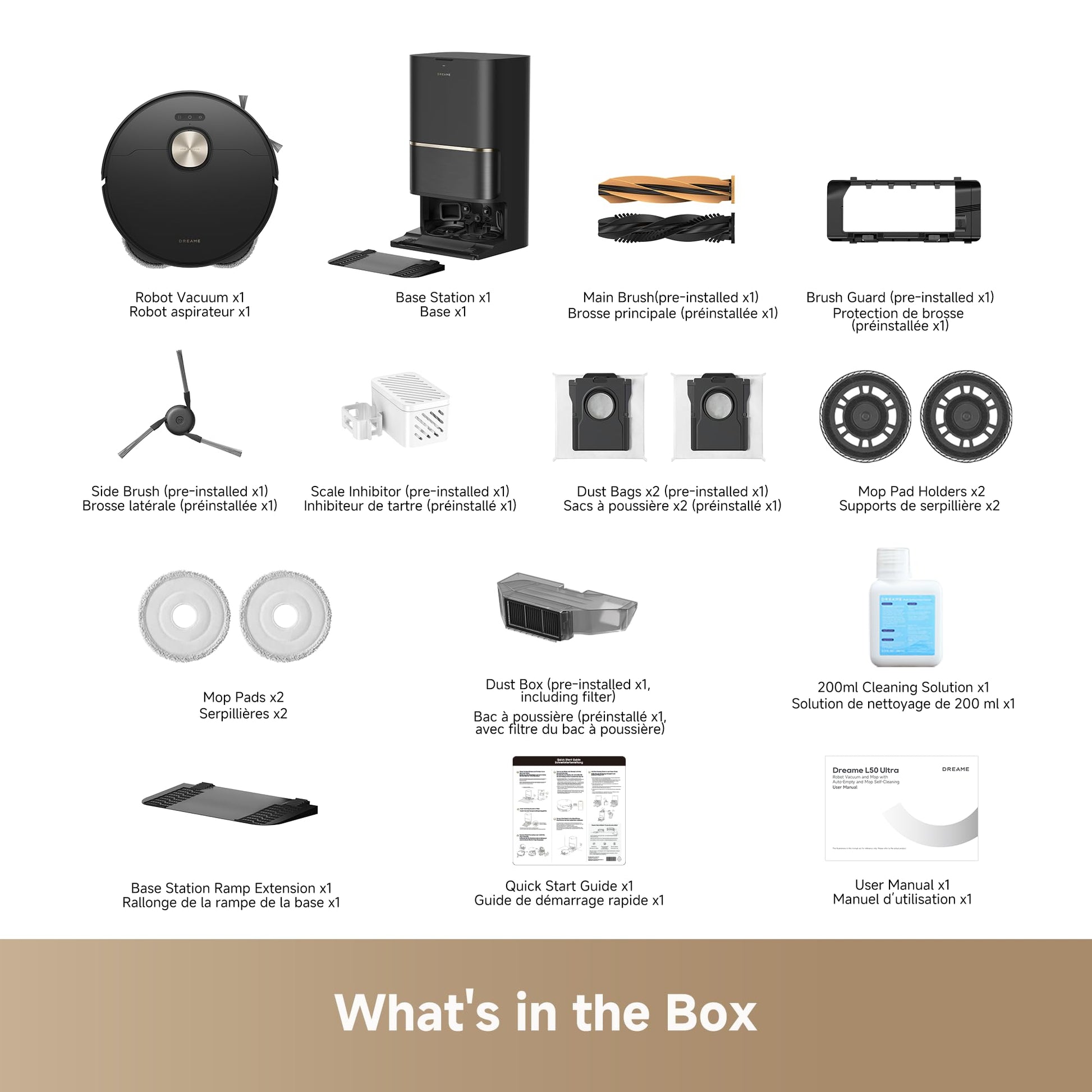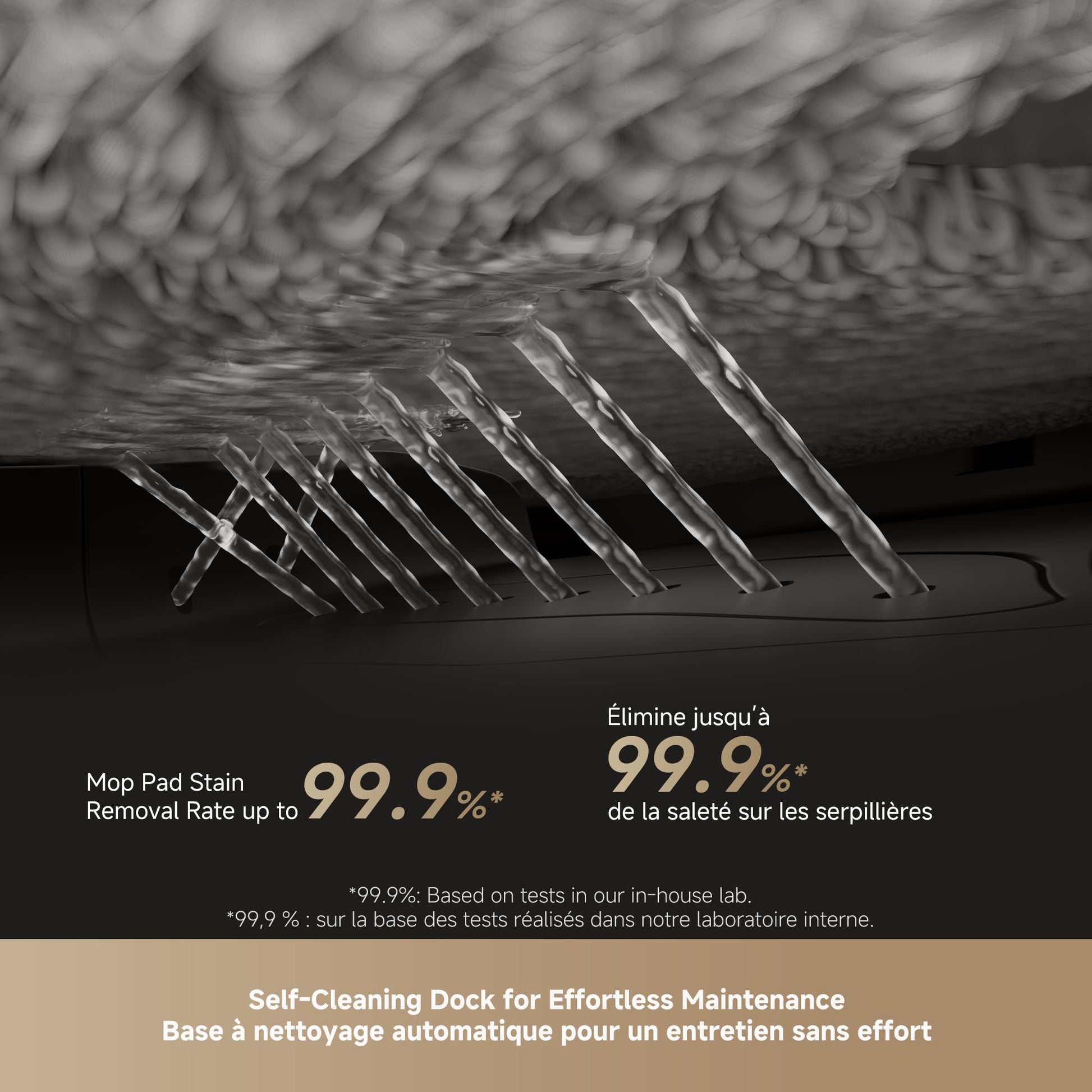 - All-in-One PowerDock Convenience: Benefit from the dock's effortless maintenance. Skip manual dust bin emptying for up to 100 days, rinsing mop pads with hot water from all the dirt, or drying them. L50 Ultra also refills solution and water for mopping and auto-washes its board, creating a hands-free post-cleaning routine.