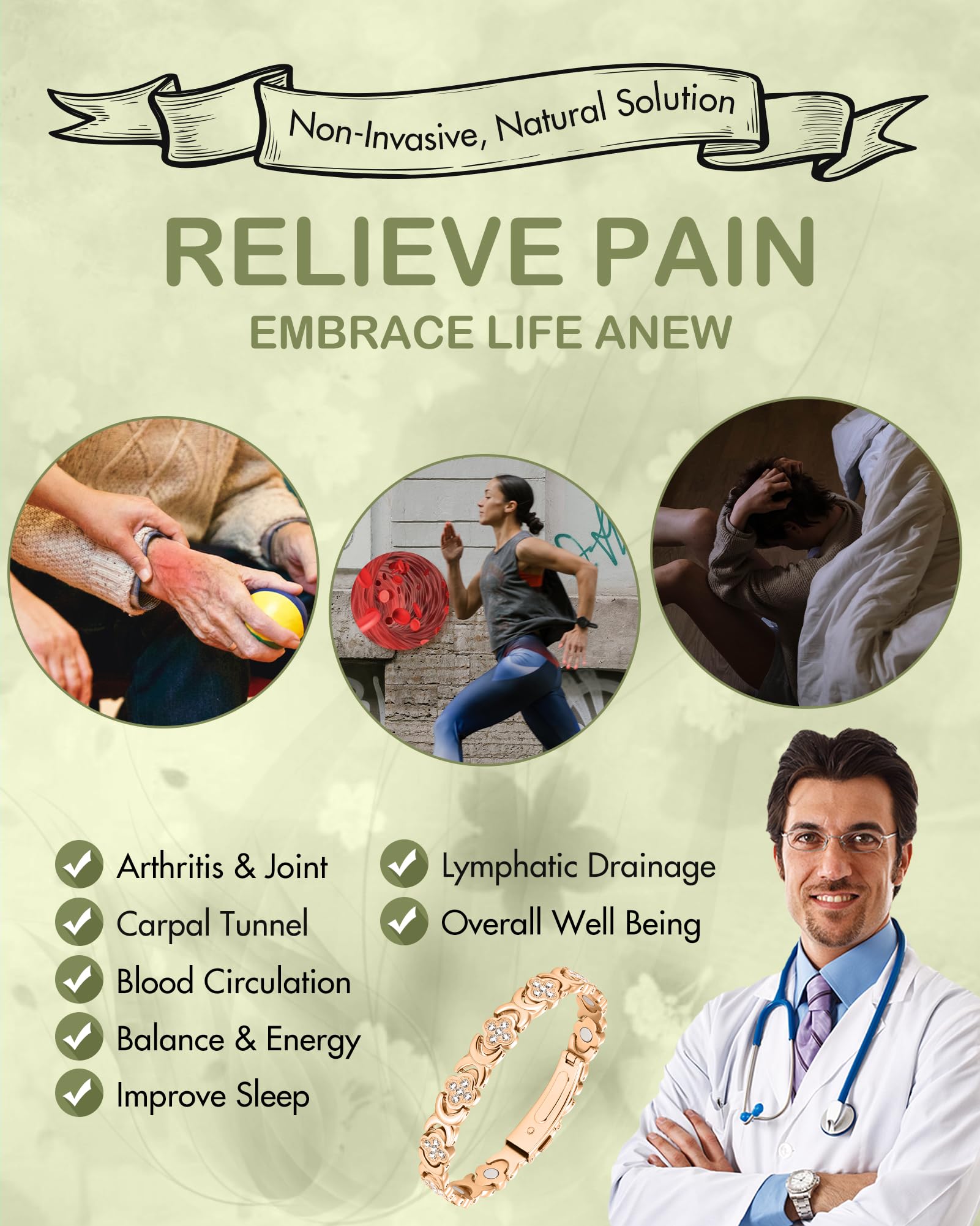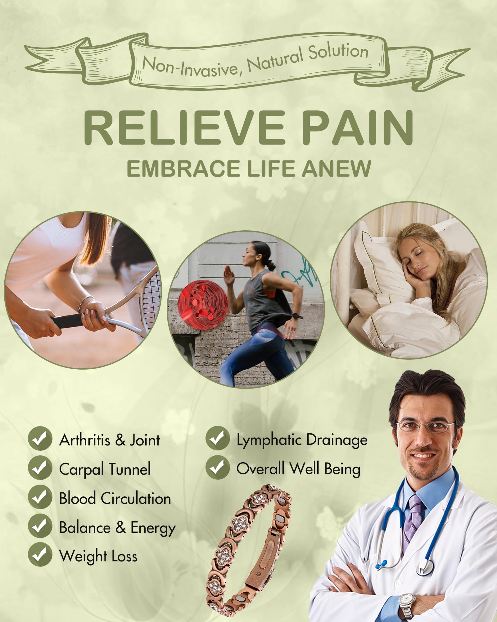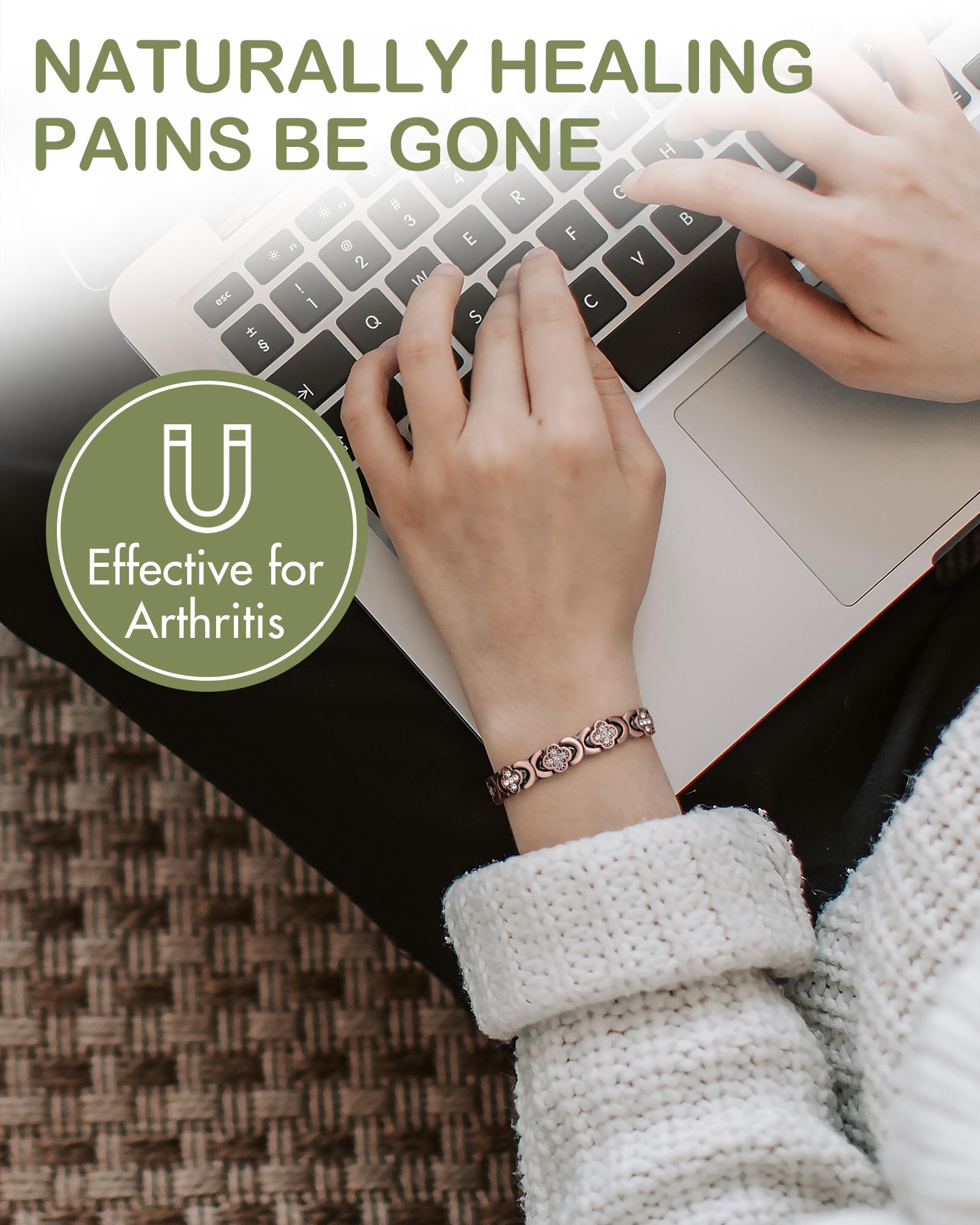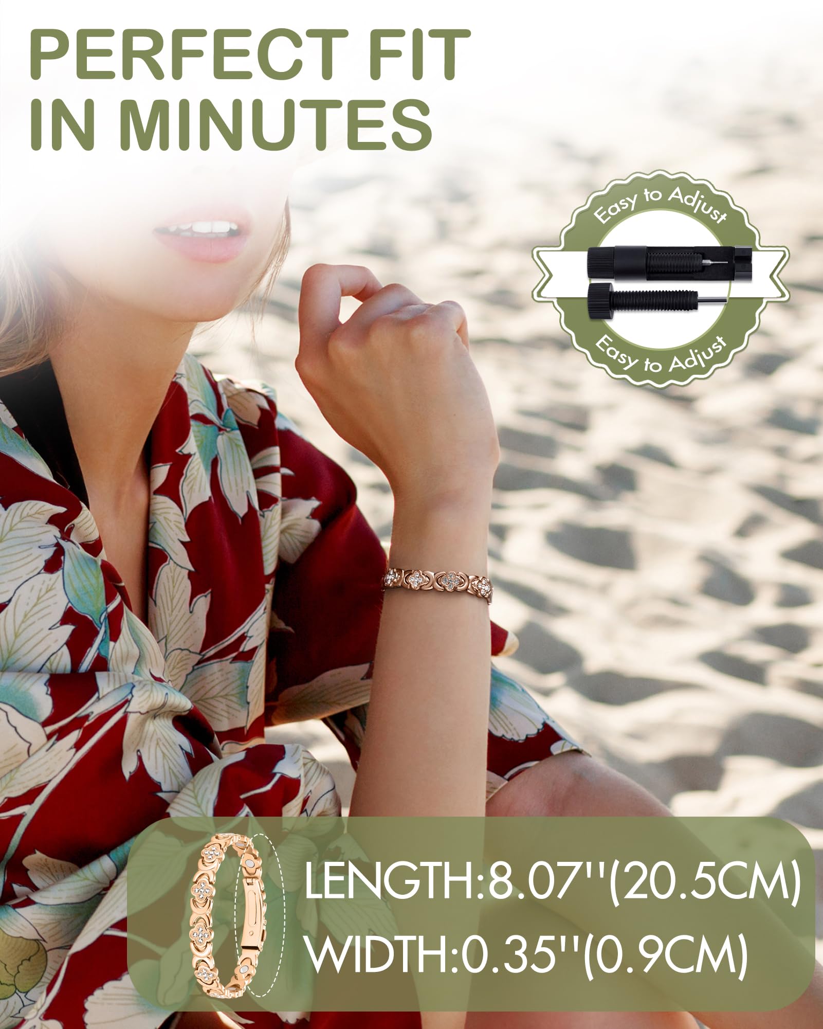 - ADJUSTABLE & COMFORTABLE: Measuring 7.87" (20 cm) in length and 0.39" (1 cm) in width, this copper magnetic bracelet for women includes a sizing tool for a perfect fit. Crafted from 99.99% solid copper, it's hypoallergenic, lead- and nickel-free for comfortable daily wear.