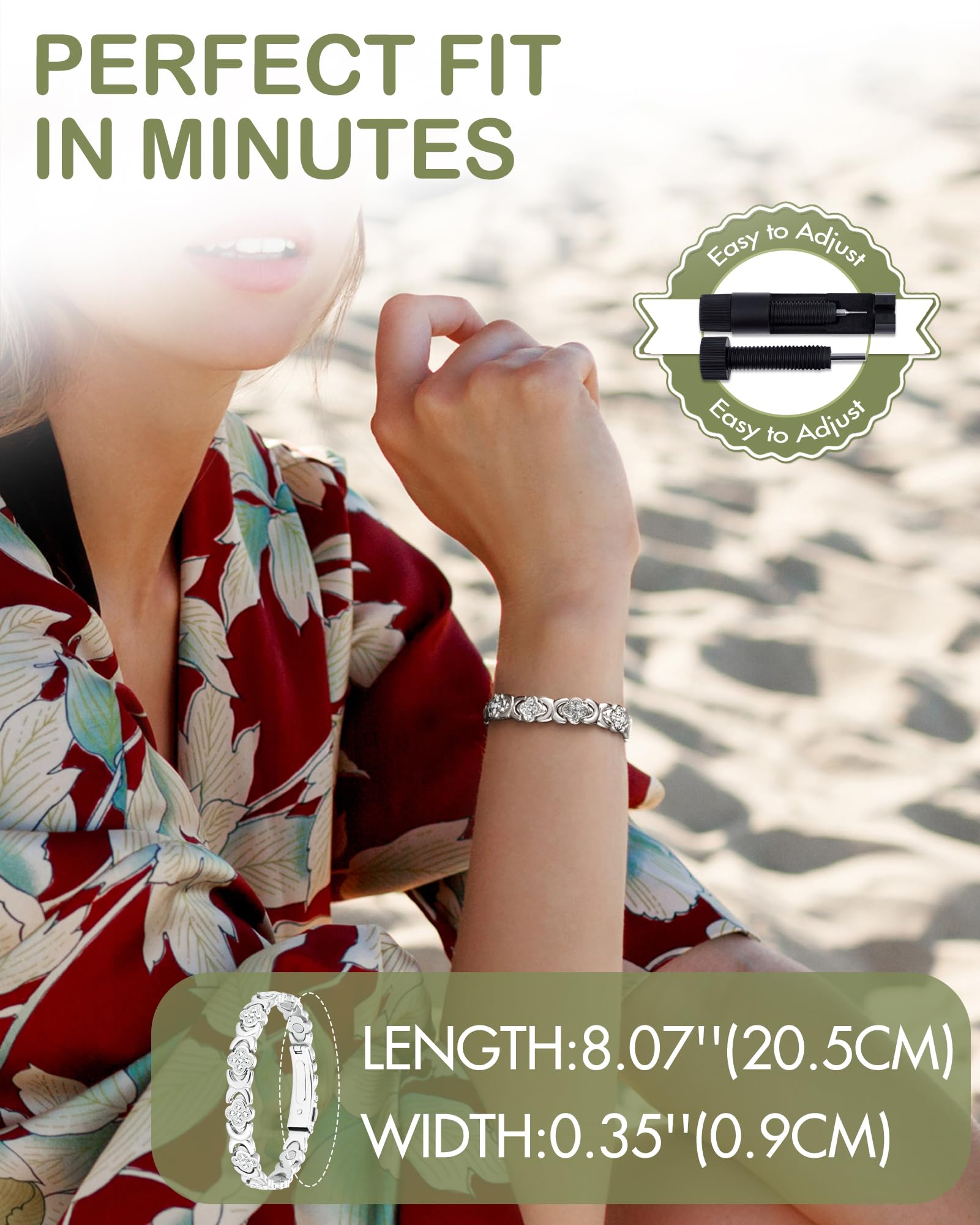 - 5X MAGNETIC STRENGTH: Experience the enhanced benefits of this magnetic bracelet for women, now equipped with PowerOval neodymium magnets (5000 gauss)—5X stronger than normal magnets—for deeper magnetic impact.
